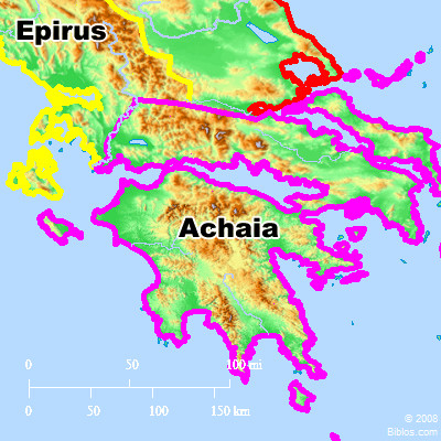 Atlas ![]() Achaia and surrounding area Maps Created using Biblemapper 3.0 Additional data from OpenBible.info You are free to use up to 50 Biblos coprighted maps (small or large) for your website or presentation. Please credit Biblos.com. Occurrences Acts 18:12 But when Gallio was proconsul of Achaia, the Jews with one accord rose up against Paul and brought him before the judgment seat,Acts 18:27 When he had Encyclopedia ACHAIAa-ka'-ya (Achaia): The smallest country in the Peloponnesus lying along the southern shore of the Corinthian Gulf, north of Arcadia and east of Elis. The original inhabitants were Ionians, but these were crowded out later by the Acheans, who came from the East. According to Herodotus, the former founded twelve cities, many of which retain their original names to this day. These cities were on the coast and formed a confederation of smaller communities, which in the last century of the independent history of Greece attained to great importance (Achaean League). In Roman times the term Achaia was used to include the whole of Greece, exclusive of Thessaly. Today Achaia forms with Elis one district, and contains a population of nearly a quarter of a million. The old Achean League was renewed in 280 B.C., but became more important in 251, when Aratus of Sicyon was chosen commander-in-chief. This great man increased the power of the League and gave it an excellent constitution, which our own great practical politicians, Hamilton and Madison, consulted, adopting many of its prominent devices, when they set about framing the Constitution of the United States. In 146 B.C. Corinth was destroyed and the League broken up (see 1 Maccabees 15:23); and the whole of Greece, under the name of Achaia, was transformed into a Roman province, which was divided into two separate provinces, Macedonia and Achaia, in 27 B.C. ACHAIA (pron. a-ka'yah), a Roman province in the N.T. times, nearly coextensive with the modern kingdom of Greece. Strong's Greek G882: AchaiaAchaia, a Roman province incl. most of Greece |