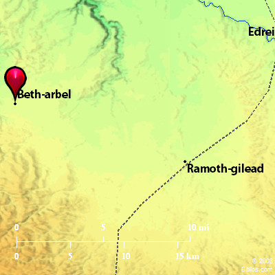beth-ar'-bel (beth 'arbe'l): The scene of a terrific disaster inflicted on the inhabitants by Shalman (Hosea 10:14). If the place intended was in Palestine, and was not the famous city of that name on the Euphrates, then probably it should be identified either with Irbid (or Irbil) in Galilee, or with Irbid, which corresponds to Arbela of the Eusebius, Onomasticon, East of the Jordan, about 12 miles Southeast of Gadara. If, as Schrader thinks (COT, II, 140), Shalman stands for the Moabite king, Shalamanu, a tributary of Tiglath-pileser, the eastern town would be the more natural identification. Possibly however the reference is to Shalmaneser III or IV. For the Galilean site, see ARBELA; see also DB, under the word