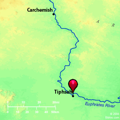 (1) This marks the northern extremity of the dominions ruled by Solomon, Gaza being the limit on the South (1 Kings 4:24). It can hardly be other than Thapsacus, on the right bank of the Euphrates, before its waters join those of the Balik. The great caravan route between East and West crossed the river by the ford at this point. Here Cyrus the younger effected a somewhat perilous crossing (Xenophon, Anabasis i.4, 2). The ford was also used by Darius; but Alexander the Great, in his pursuit constructed two bridges for the transport of his army (Arrian iii.7). Under the Seleucids it was called Amphipolis. The site is probably occupied by the modern Qal`at Dibse, where there is a ford still used by the caravans. It is about 8 miles below Meskene, where the river makes a bend to the East.
